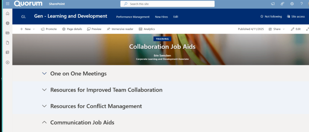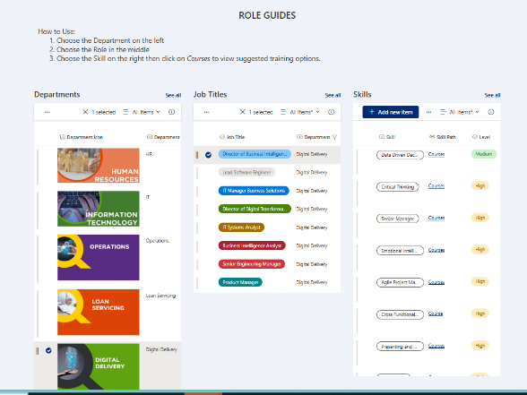 Role Guides built in SP site using SP lists to drive continuous learning and succession planning.